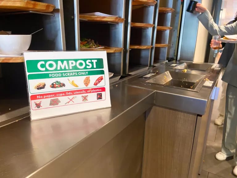 The Gist Collins Dining Hall just completed its first month of the new semester by composting nearly two tons of food scraps and kitchen waste. This student led initiative, launched by the EcoReps, helps divert waste from landfills while making daily tasks easier for our hardworking dining hall staff. While the program is growing, organizers are currently working to fix confusing bin labels to ensure every scrap ends up in the right place.